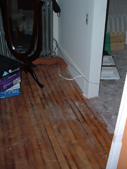 Here’s the sag from above. Look a the hardwood seams, and you can see the curve.